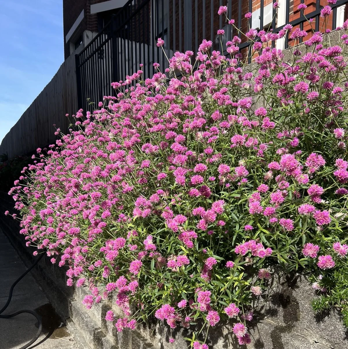 The color palette for the walkway garden is predominantly pinks and purples. I chose these calmer colors since many parishioners walk by the garden on their way to Mass. A number of parishioners have mentioned how the flowers help put them into a more contemplative space as they prepare to worship.