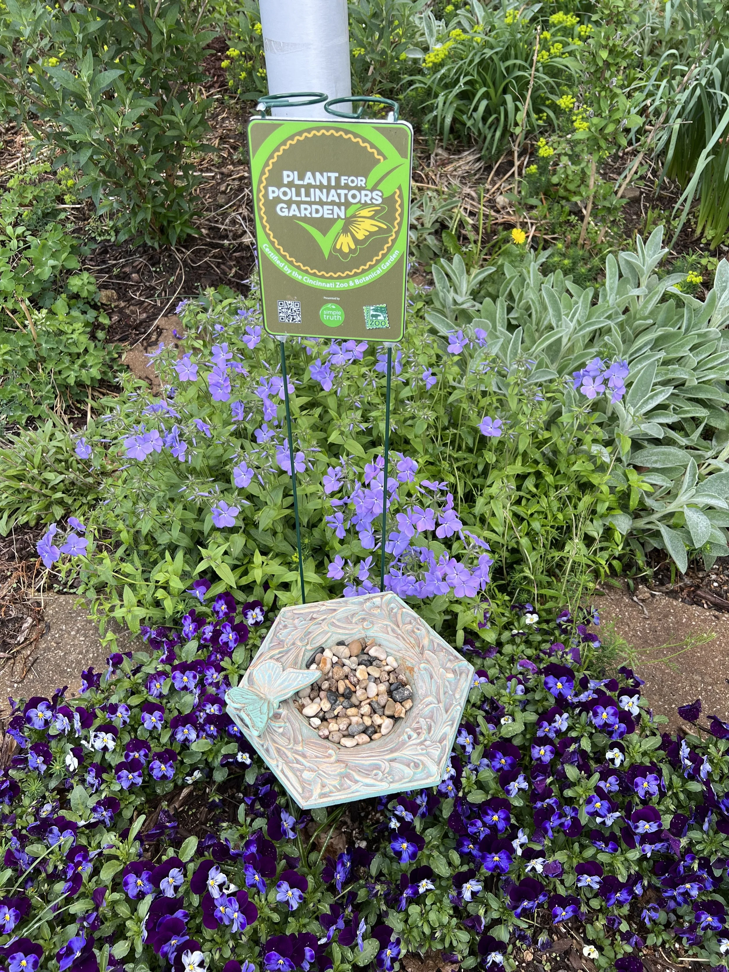 The Cincinnati Zoo and Botanical Gardens designated the garden in March 2024 as one of their “Pollinator Gardens”. To qualify a garden must include certain features, including a water source, like the butterfly puddler pictured above.