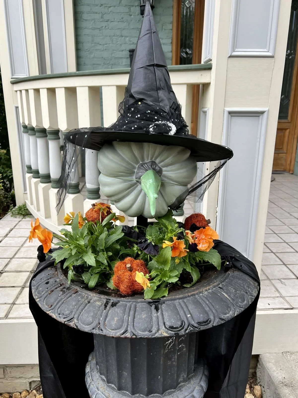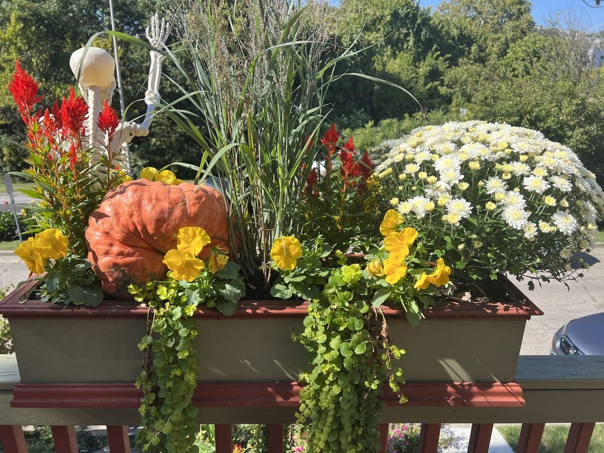 As the days get shorter, we see the bright summer shades of fire engine red geraniums give way to the more muted tones of burgundy chrysanthemums. It’s also a time to celebrate the harvest season by incorporating pumpkins and dried seed heads into your designs. And let’s not forget, for those who want to add a touch of humor to their plantings, Americans spend more on decorations for Halloween than any other holiday except Christmas.