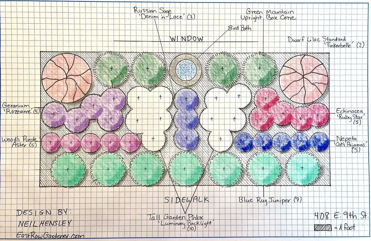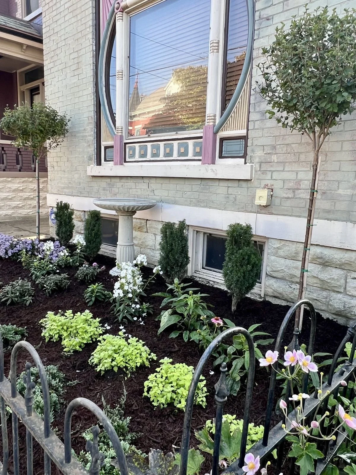 She wanted to remove the existing garden and replace it with a space of summer-long color she, her neighbors, and pollinators would enjoy. Oh yeah, and a bird bath to entertain her cats sitting in the front window. We were able to place all of that into a fairly small space and she looks forward to watching the garden mature over the next couple of years, while providing ongoing restorative power.