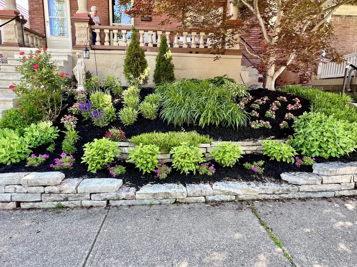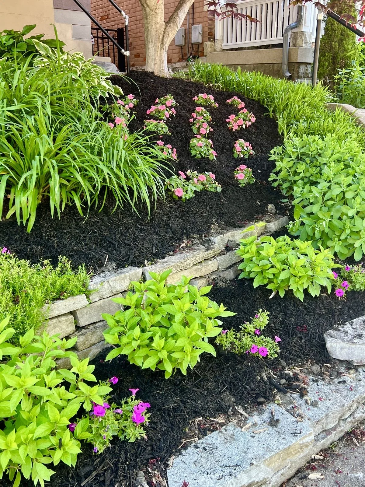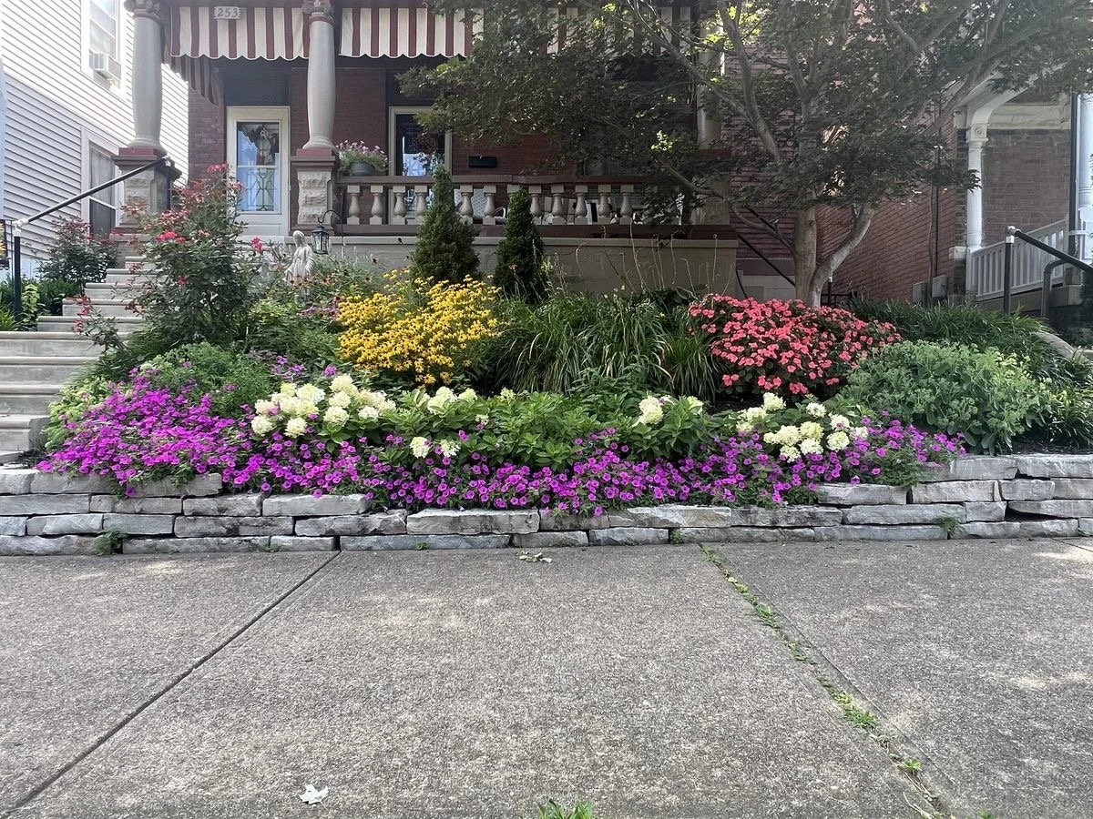 I created a design which included the addition of colorful annuals and long blooming hydrangeas, to provide season long color. I also removed a number of non-performing perennials and replaced them with more shade tolerant varieties.
