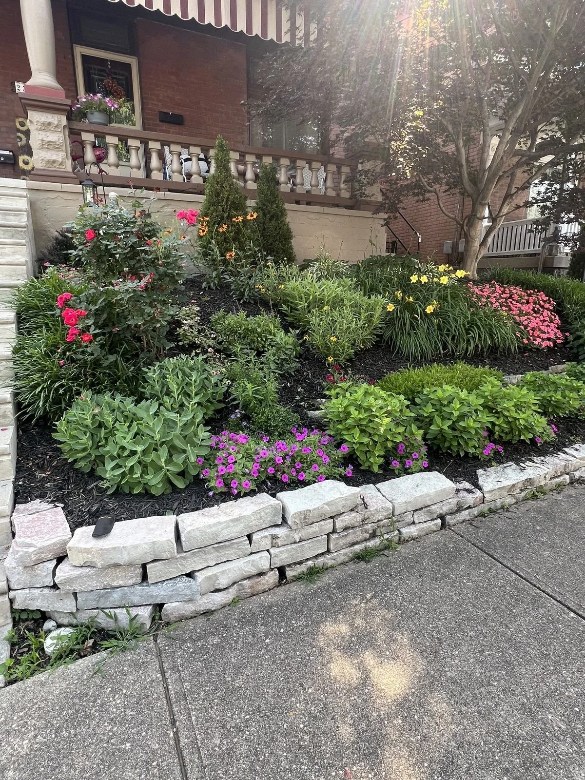 The photo to the right shows the garden in March 2025 before the redesign. The pics below show how the new design unfolded over the course of the summer.