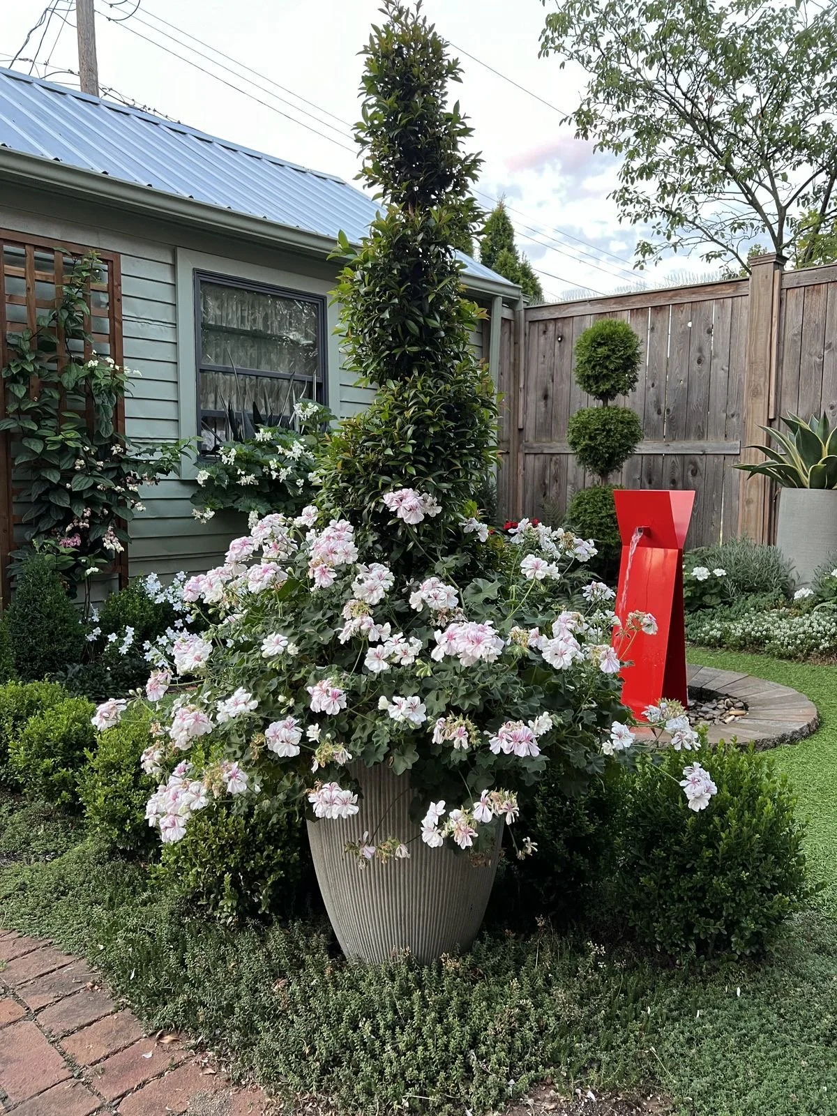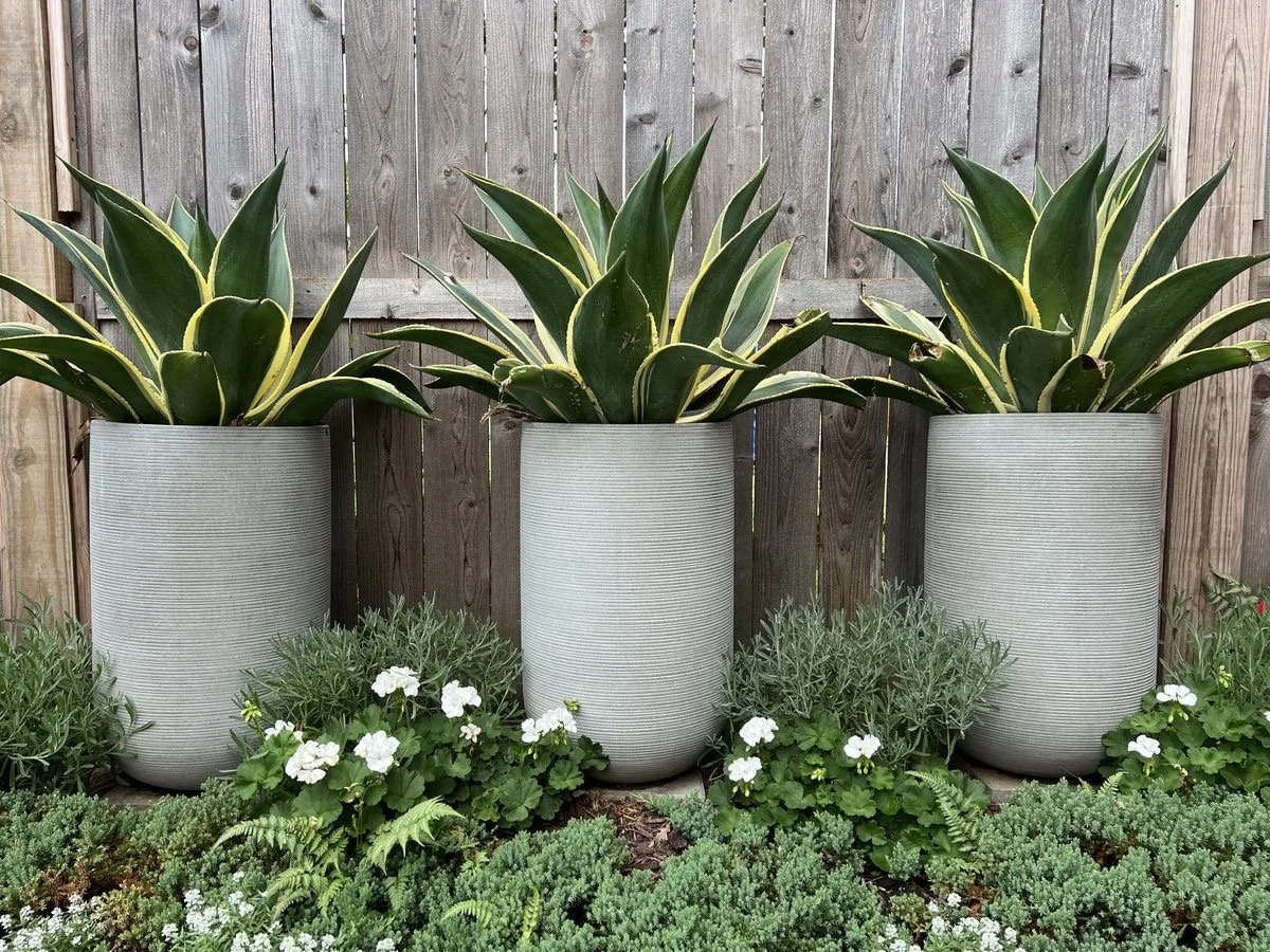 Tall crotons act as the thrillers in this “Thriller, Filler, Spiller” design.